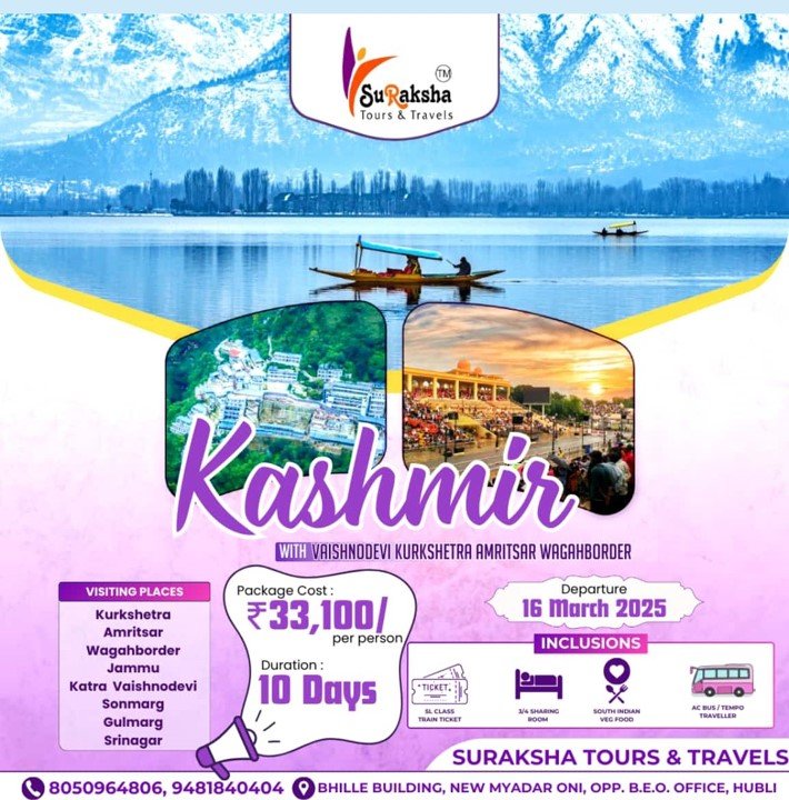 This 10-day Kashmir tour by SuRaksha Tours & Travels is ideal for those seeking a spiritual and scenic retreat. With inclusive travel, food, and accommodation, this package ensures a convenient and memorable journey across northern India’s most iconic locations.