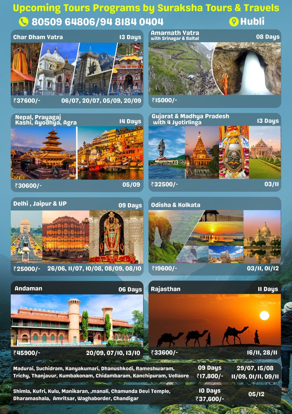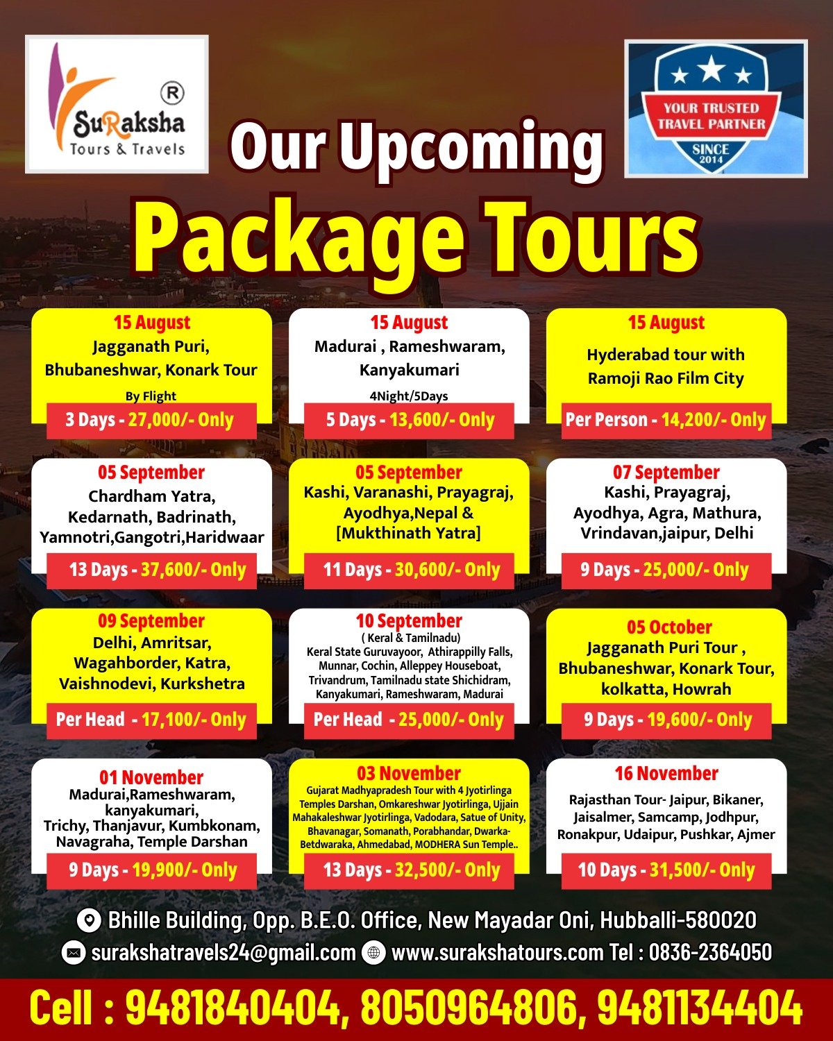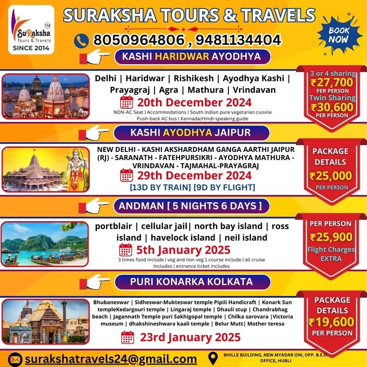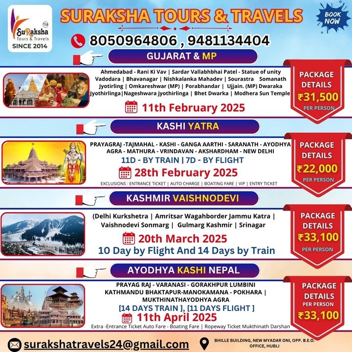 Suraksha Tours is a trusted name in the travel industry, offering comprehensive tour packages that suit every type of traveler. With a dedicated team of travel experts, we ensure seamless planning, excellent service, and exceptional experiences for all our clients. Whether you're looking for a solo getaway, a family trip, or a corporate retreat, we are here to make your dream vacation come true.